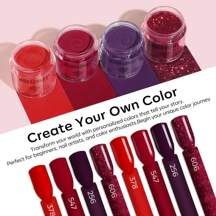 Met vier prachtige poeders (#378 cream, #547 cream, #256 cream, #606 glitter) en alle tools die je nodig hebt, haal je met deze set een volledige salonervaring in huis zonder het gebruik van een LED of UV lamp. De formule zorgt voor sterke, flexibele nagels die tot meer dan drie weken mooi blijven.