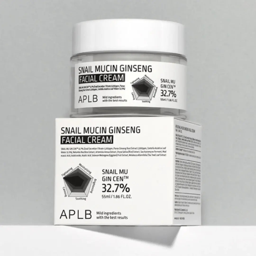 De APLB Snail Mucin Ginseng Facial Cream is een rijke, herstellende crème die je huid intens hydrateert, versterkt en verzacht. Met krachtige ingrediënten zoals snail mucin, ginseng en centella asiatica leaf water richt deze crème zich op het herstellen van de huidbarrière, het verminderen van fijne lijntjes en het kalmeren van gevoelige zones.