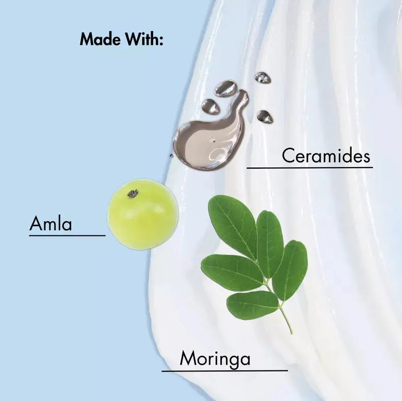 Aqua/Water/Eau, Cetearyl Alcohol, Betaine, Hydrogenated Polydecene, Polyquaternium-37, Moringa Oleifera Leaf Extract, Phyllanthus Emblica Fruit Extract, Serenoa Serrulata Fruit Extract, Phytosterols, Ceramide Np, Ceramide Eop, Ceramide Ap, Copper Tripeptide-1, Phytosphingosine, Hydroxypropyl Bisstearamide Mea, Hydroxypropyl Bislauramide Mea, Biotin, Brassicamidopropyl Dimethylamine, Potassium Olivate, Polyglyceryl-10 Stearate, Polyglyceryl-3 Diisostearate, Stearic Acid, Parfum (Fragrance), Propylene Glycol Dicaprylate/Dicaprate, Ppg-1 Trideceth-6, Polyquaternium-7, Lactic Acid, Caprylyl Glycol, Ethylhexylglycerin, Maltodextrin, Polyacrylamide, Coumarin, Limonene.