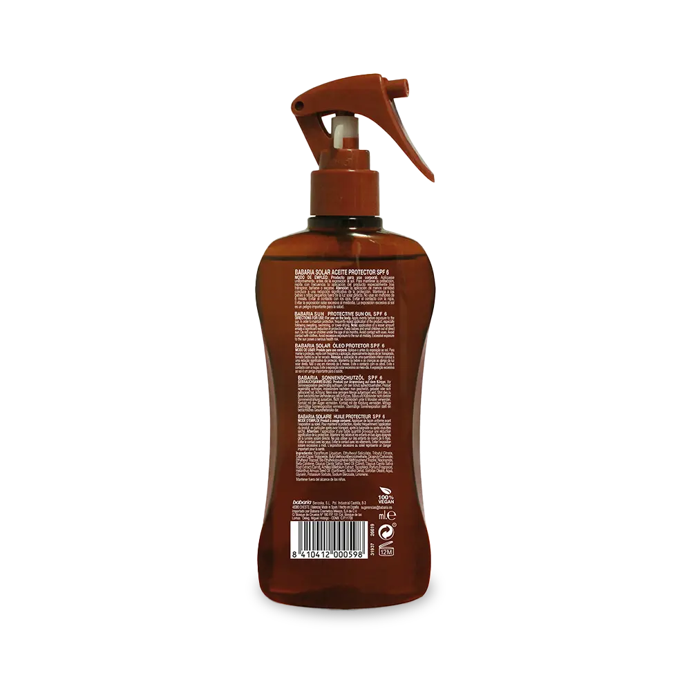 De Babaria Carrot Protective Sun Oil Spray SPF 6 is jouw perfecte partner voor een zomerse glow met een vleugje bescherming. Deze lichte, niet-vette olie is verrijkt met wortelolie, een natuurlijke bron van bètacaroteen en vitamine A, die de huid voedt en helpt bij het verkrijgen van een mooie, egale bruine teint. De formule biedt bescherming tegen UVA- en UVB-stralen en is waterbestendig, ideaal voor zonnige dagen aan het strand of bij het zwembad.