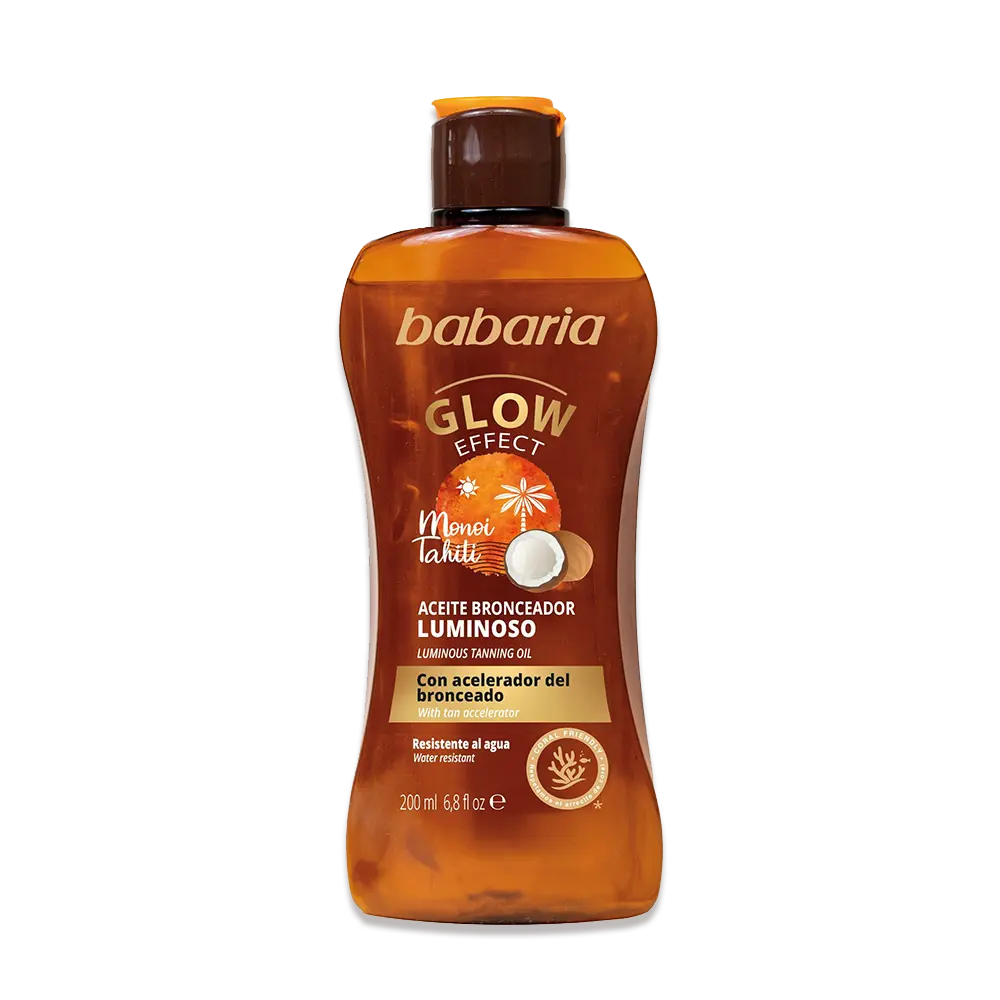De Babaria Glow Effect Tanning Oil Gel is jouw ultieme secret voor een diepe, stralende tan met een subtiele shimmer. Deze tanning gel-olie combineert kokosolie, aloë vera en wortelolie (bèta-caroteen) voor een intens gehydrateerde huid en een versnelde, langdurige bruining. Perfect voor zonliefhebbers met een reeds gebruinde huid die hun glow willen verdiepen en verlengen.