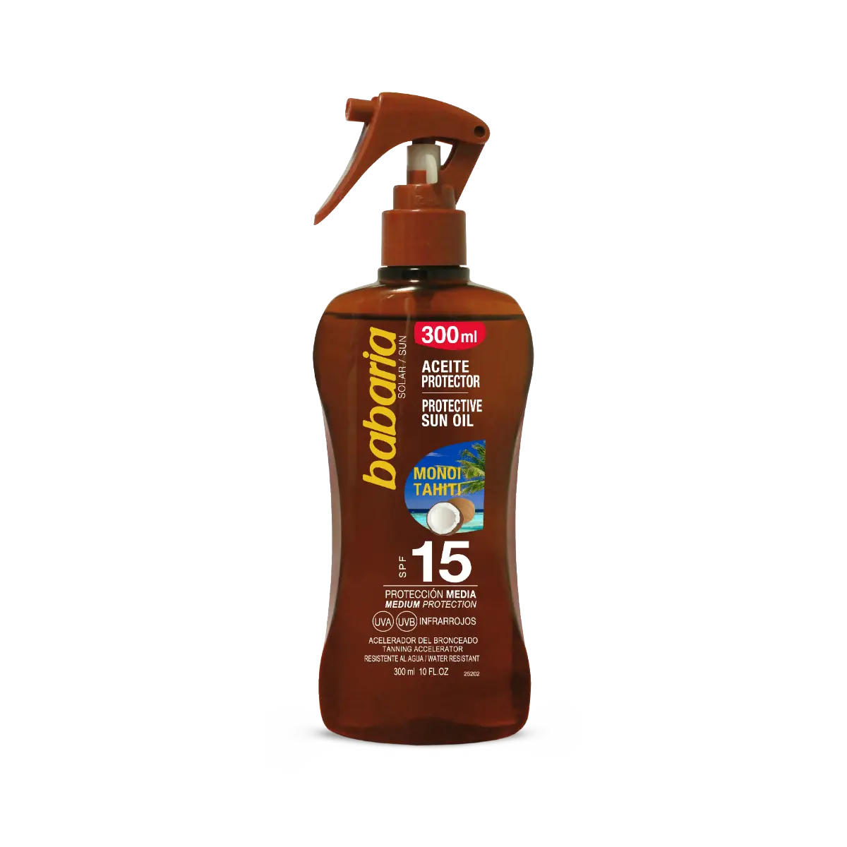 De Babaria Tahiti Coconut Protective Sun Oil Spray SPF 15 is jouw zomerse go-to voor een stralende, beschermde teint met tropische vibes! Deze zonnespray combineert zonbescherming met een natuurlijke tan boost, dankzij voedende oliën van Tahiti monoï, wortel en kalmerende aloë vera. En die heerlijke kokosgeur neemt je meteen mee naar een zonovergoten eiland!