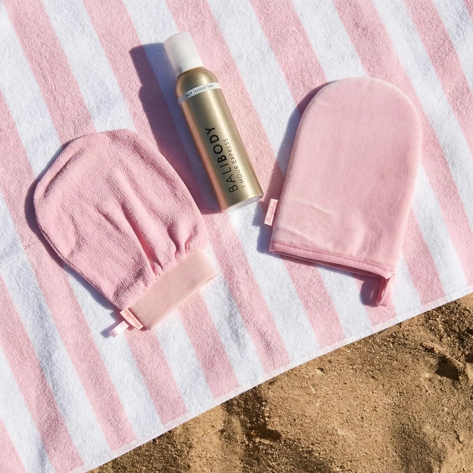 - Neem een kleine hoeveelheid van de Bali Body 1 Hour Express Tan op de Boozyshop Tanning Mitt.