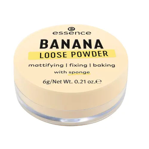 De Essence Banana Loose Powder is een ultrafijn loose powder in een zachte gele tint. Deze poeder is perfect om matte highlights aan te brengen boven de jukbeenderen, op het voorhoofd, de neusbrug of de boog van je lippen. Maar dat is niet alles, het is ook perfect voor het fixeren van make-up en het toepassen van de concealer baking techniek.
