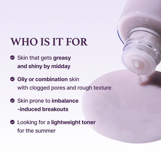 Dankzij 100 dagen gefermenteerde zwarte rijst uit Jindo (Korea), met 2,4x meer antioxidanten dan gewone zwarte rijst, helpt deze toner de huidbarrière te versterken, sebum in balans te houden en oxidatieve stress tegen te gaan. De vernieuwde formule bevat minder olie en meer water, wat zorgt voor snelle absorptie en een frisse, glanzende finish. Perfect om onzuiverheden te voorkomen, poriën te verfijnen en roodheid te kalmeren!