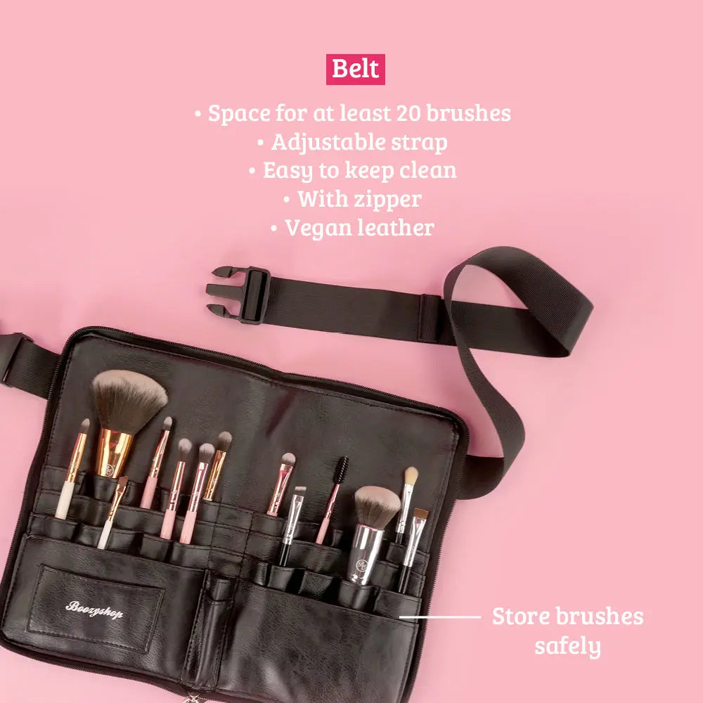 De Boozyshop Makeup Brush Belt is een absolute musthave voor iedere make-up artist en beauty lover die haar brushes altijd netjes en binnen handbereik wil hebben. Deze professionele belt biedt ruimte voor minimaal 20 kwasten, zodat je je hele brush collectie overzichtelijk kunt opbergen. Dankzij de verstelbare gesp draag je hem comfortabel om iedere taille en heb je al je favoriete tools altijd direct bij de hand.