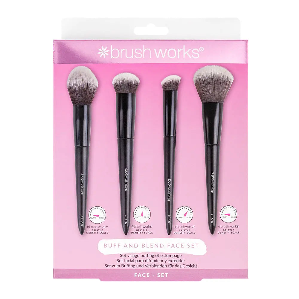 De Brushworks Buff and Blend Face Set is jouw ultieme basis voor een flawless make up look. Met deze vier essentiële brushes creëer je moeiteloos een egale, frisse en perfect geblende base. Van een subtiele bronzed glow tot een airbrushed foundation finish, deze set doet het allemaal.
