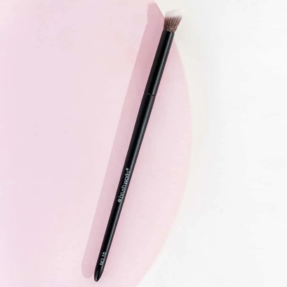 De Brushworks No. 15 Angled Blending Eye Brush is een echte musthave voor jouw oogmake up routine. Met de unieke schuine vorm blend en diffuseer je oogschaduw moeiteloos voor een zachte, naadloze finish. Perfect als je jouw look net dat beetje extra diepte wilt geven.