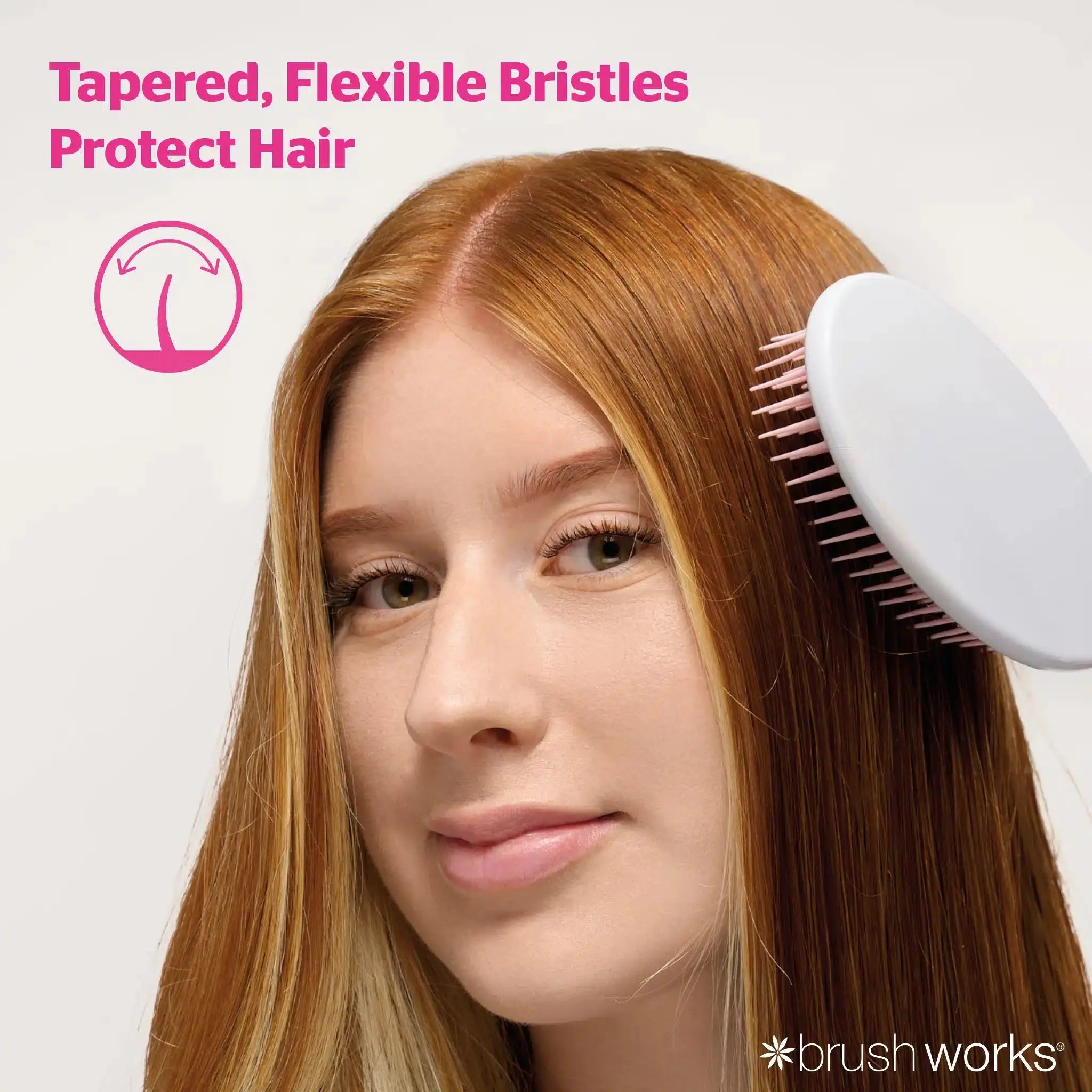 De flexibele borstelharen met verschillende lengtes glijden soepel door het haar en helpen haarproducten gelijkmatig te verdelen. Hierdoor voelt je haar zacht, glad en makkelijk te stylen aan. Dankzij het zachte design is deze borstel extra geschikt voor fijn en kwetsbaar haar.