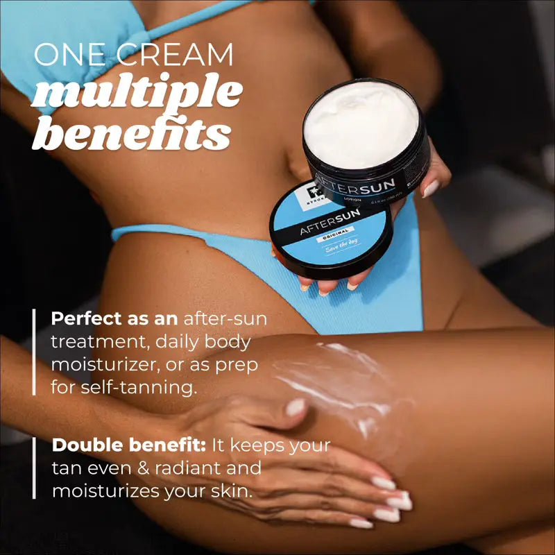 De ByRokko After Sun is jouw ultieme after tanning must have om je sunkissed glow zo lang mogelijk te behouden. Deze rijke after sun cream hydrateert intens, kalmeert de huid en helpt het natuurlijke vochtgehalte te herstellen na het zonnen of een tanning session.