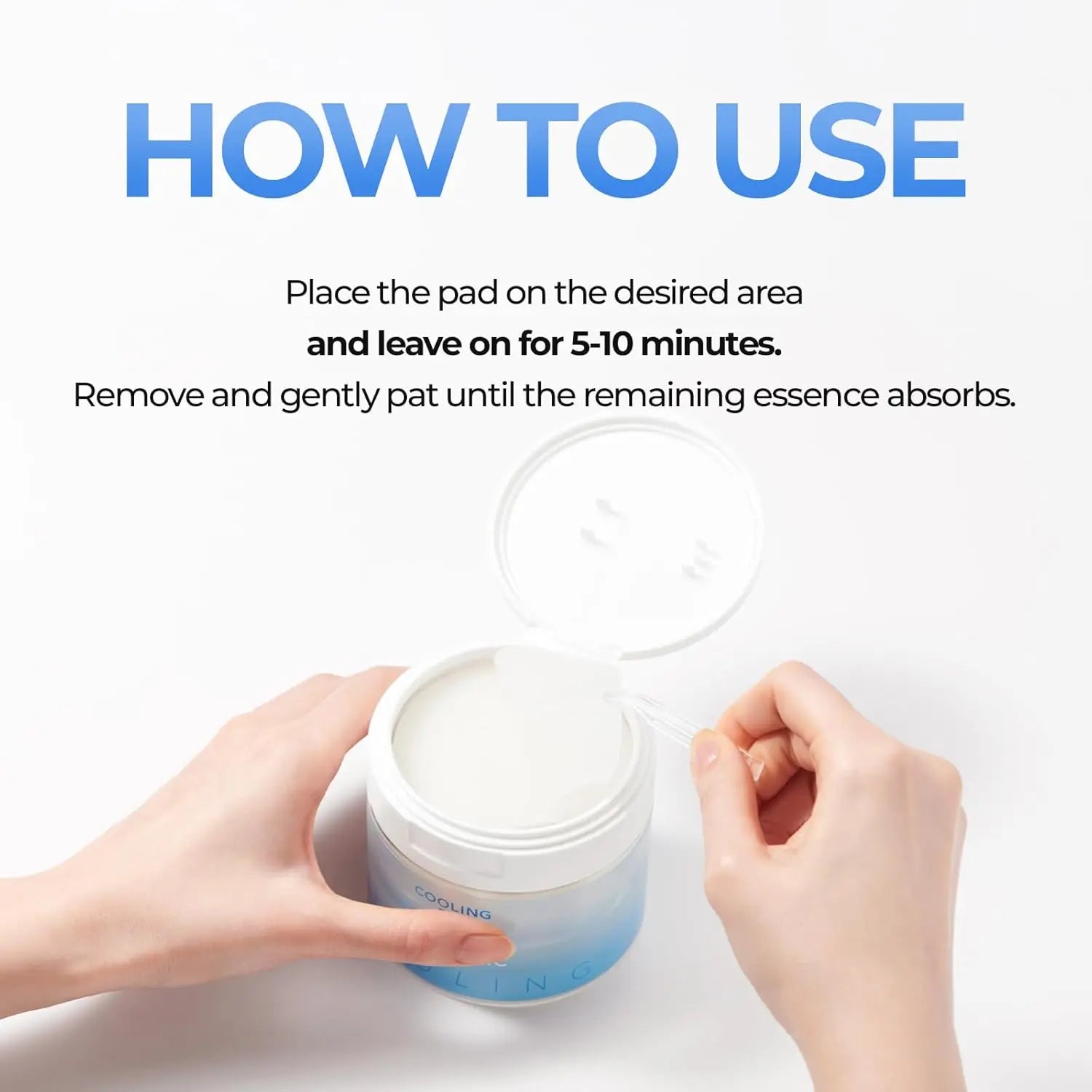 - Veeg de pads zachtjes over je schone, droge huid.