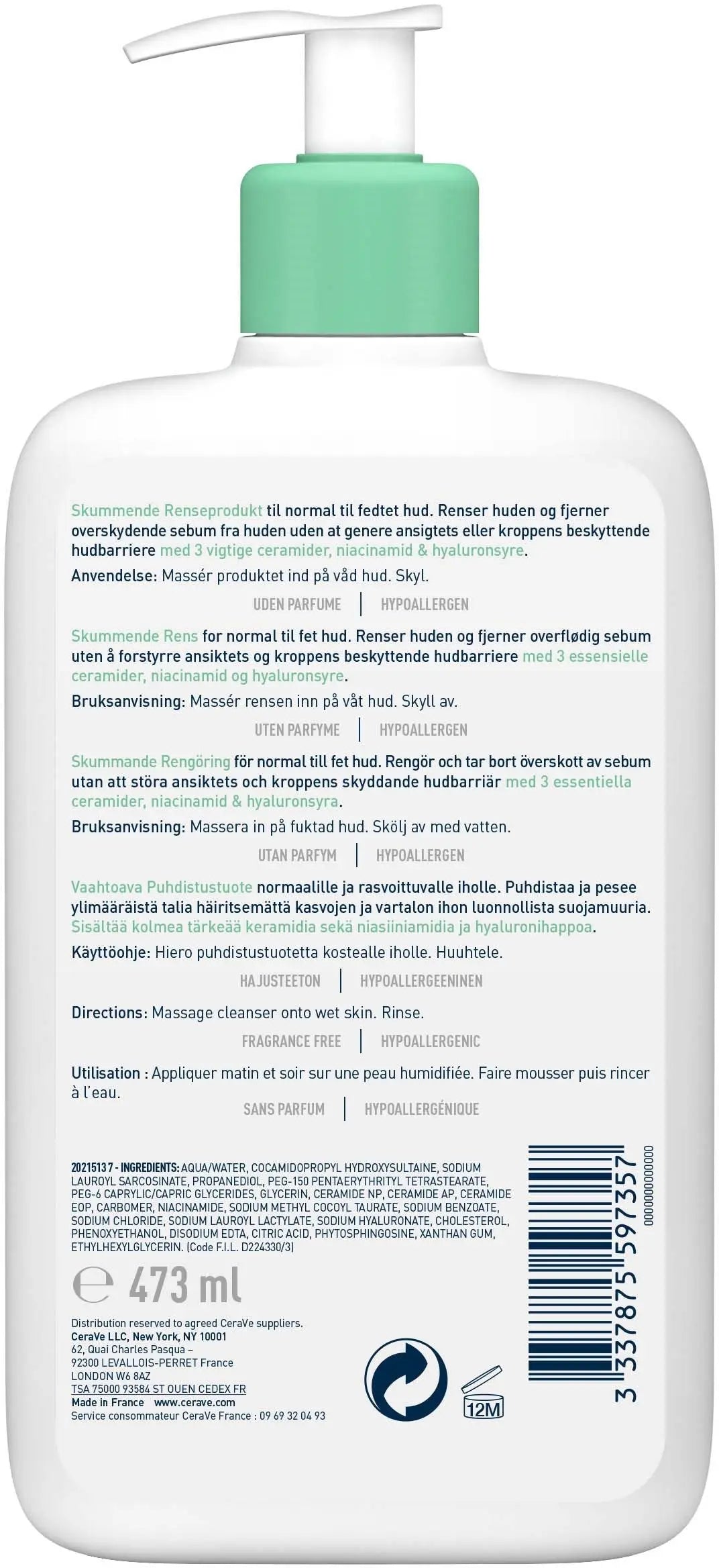 De CeraVe Foaming Cleanser 473 ml is dé frisse start van je skincare routine voor een normale tot vette huid. Deze schuimende gelreiniger verwijdert effectief vuil, overtollige olie en make-up zonder je huid uit te drogen of te irriteren. De formule, ontwikkeld met dermatologen, is verrijkt met drie essentiële ceramiden, hyaluronzuur en niacinamide, alles wat je huid nodig heeft om gehydrateerd, in balans en kalm te blijven!