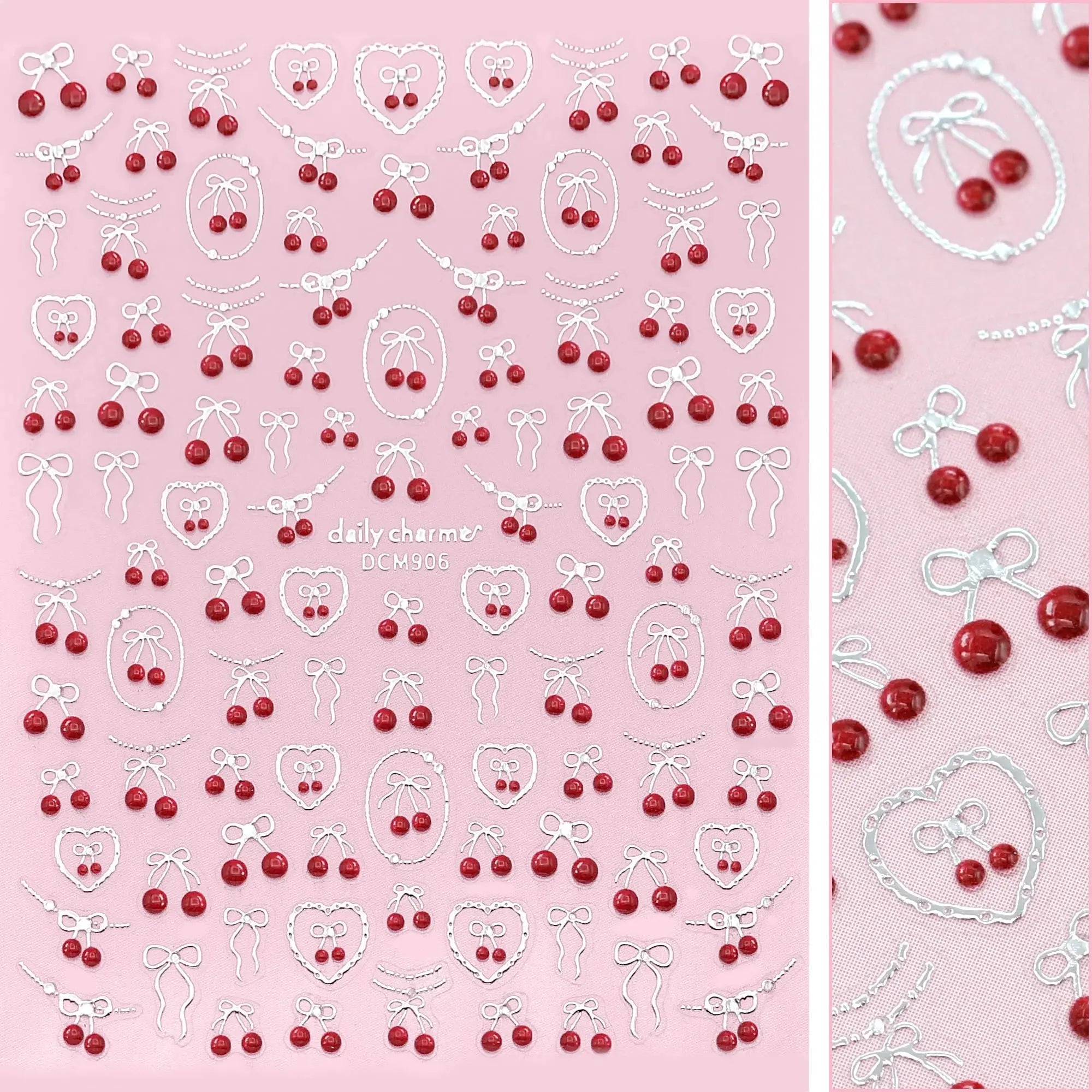 De Daily Charme 3D Embossed Nail Art Sticker Cherry Crush is alles wat je nodig hebt voor een juicy nail moment met vintage flair. Deze sticker sheet zit vol met glossy rode kersjes, sierlijke strikjes en romantische frames, perfect voor dat zoet-meets-sassy gevoel. Of je nu een milkshake date hebt of gewoon in een cute mood bent, deze stickers tillen je manicure naar een flirterig nieuw niveau.