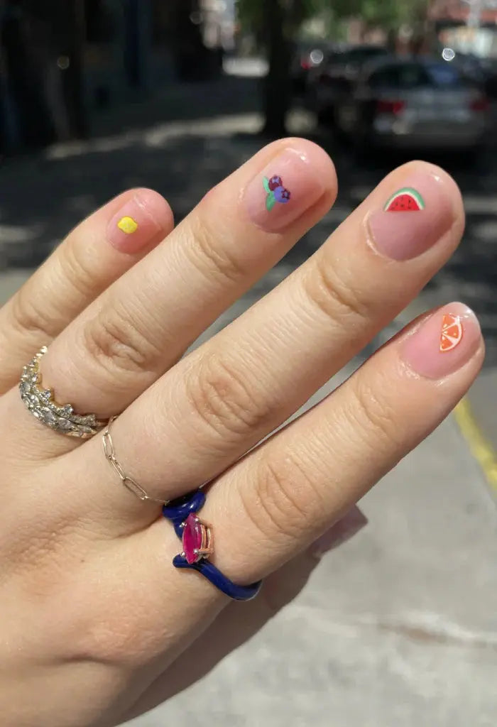 Perfect voor een subtiele accent nagel of een complete fruity set. Mix verschillende fruitjes voor een kleurrijke look of houd het minimal met één cute detail per nagel. Plakken, topcoat erover en jouw juicy manicure is klaar.