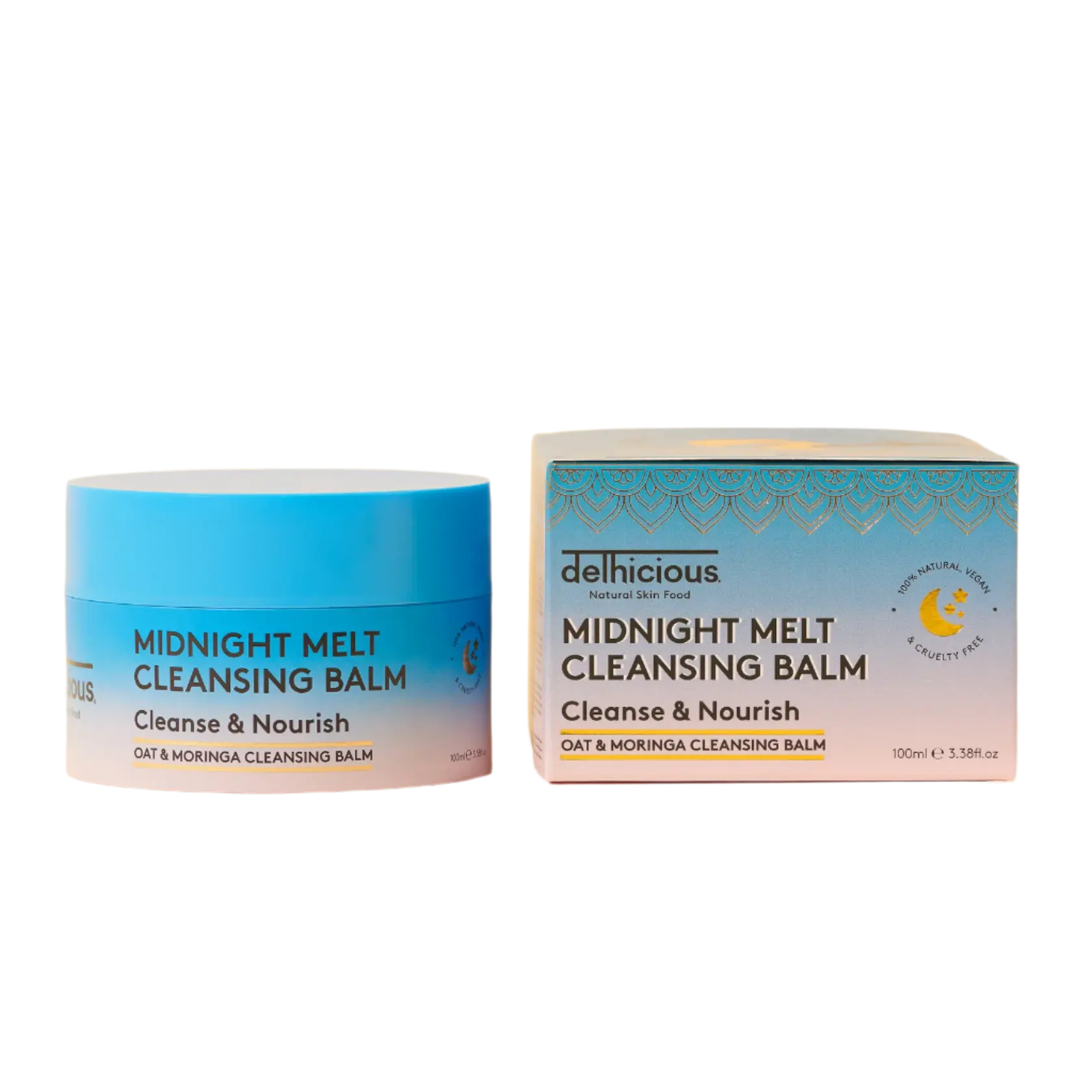 De Delhicious Moon Moisture Cleansing Balm is jouw dagelijkse luxe reinigingsritueel om de dag van je huid te smelten. Deze rijke, romige balsem verandert in een zijdezachte olie die moeiteloos make-up, vuil en onzuiverheden verwijdert, zonder je huid uit te drogen. Perfect voor elke huidtype en verrijkt met 100% natuurlijke, plantaardige ingrediënten.