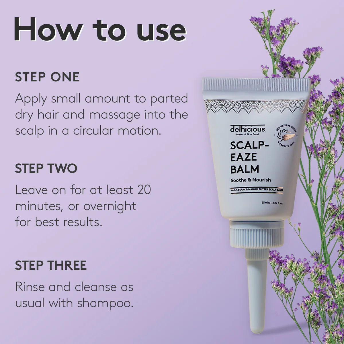 • kalmeert en hydrateert een droge, jeukende hoofdhuid
