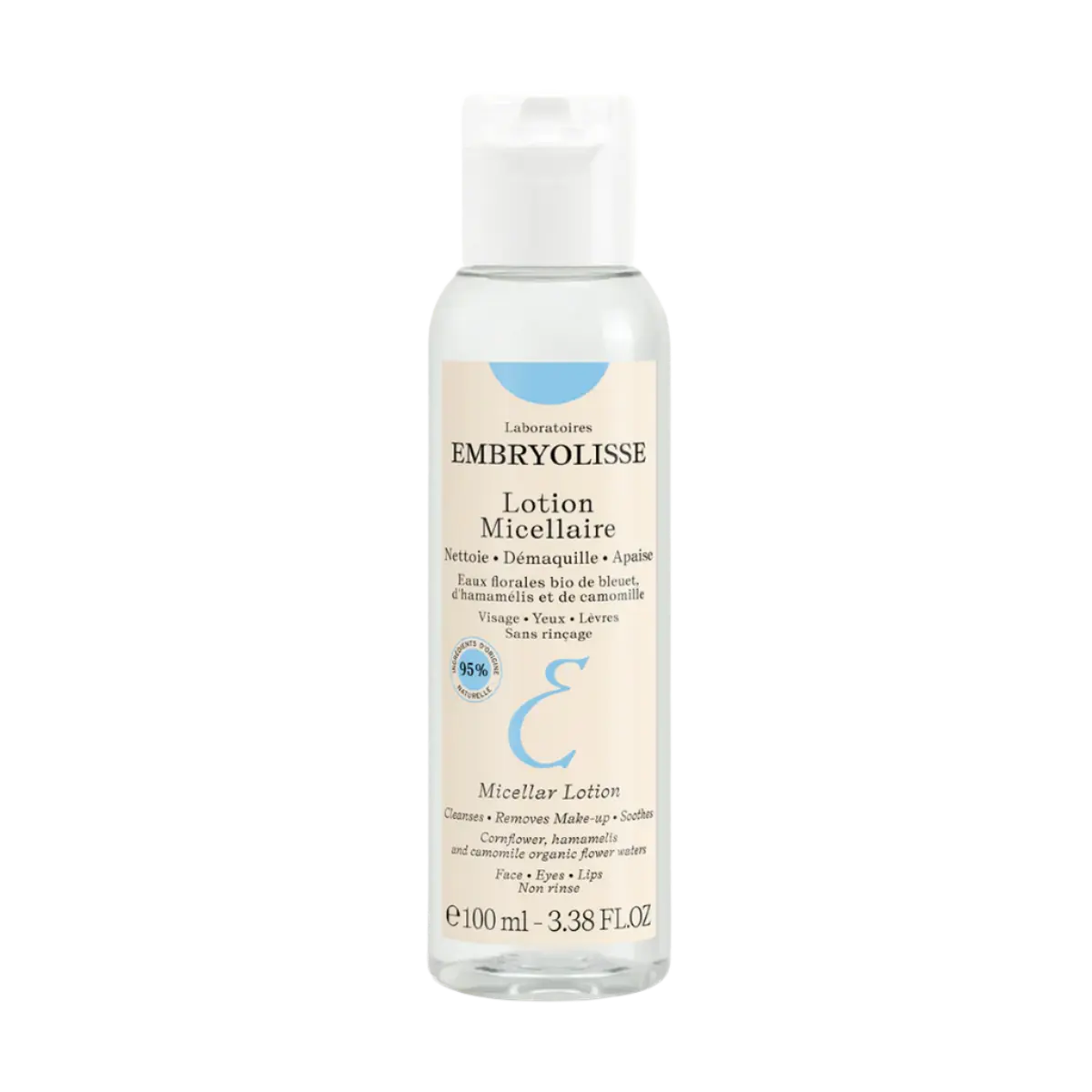 De Embryolisse Lotion Micellaire 100 ml. is jouw zachte, alles-in-één oplossing voor het reinigen van je gezicht – zonder water! Deze micellaire lotion is geschikt voor alle huidtypes en bevat maar liefst 95% natuurlijke ingrediënten, waaronder bloemige extracten die je huid niet alleen schoonmaken, maar ook heerlijk kalmeren.