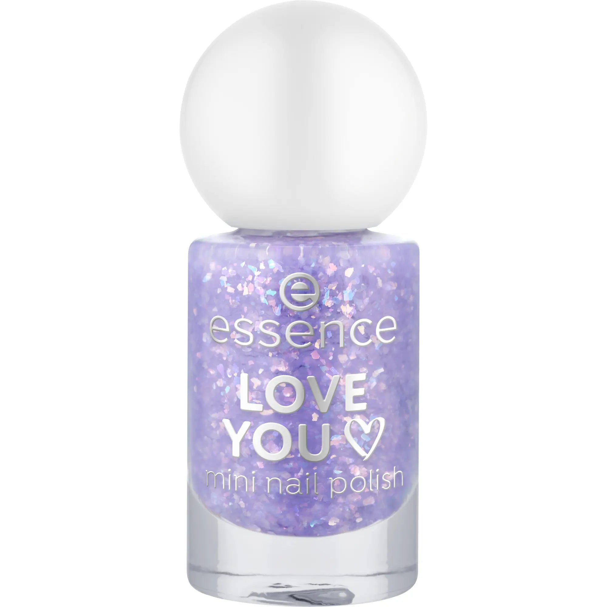 De Essence Love You Mini Nail Polish 13 is een echte eyecatcher voor iedereen die houdt van speelse, sprankelende nagels. Deze betoverende lila tint zit boordevol holografische confetti die het licht vanuit elke hoek vangt en zorgt voor een multidimensionale shimmer. Klein formaat, maar groots in effect.