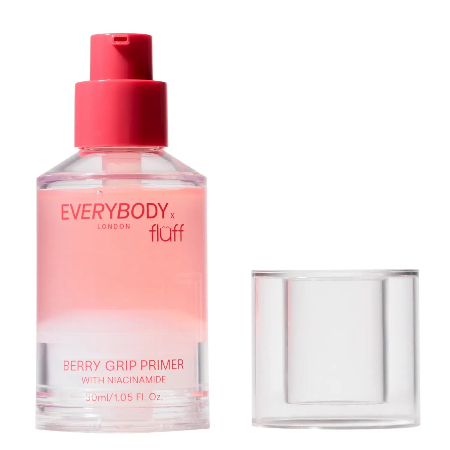 De Everybody London X Fluff Berry Grip Primer with Niacinamide is jouw geheime stap voor make-up die de hele dag on point blijft. Deze multitasking primer combineert long-lasting make-up met skincare benefits, zodat je huid er niet alleen mooier uitziet, maar zich ook beter voelt.