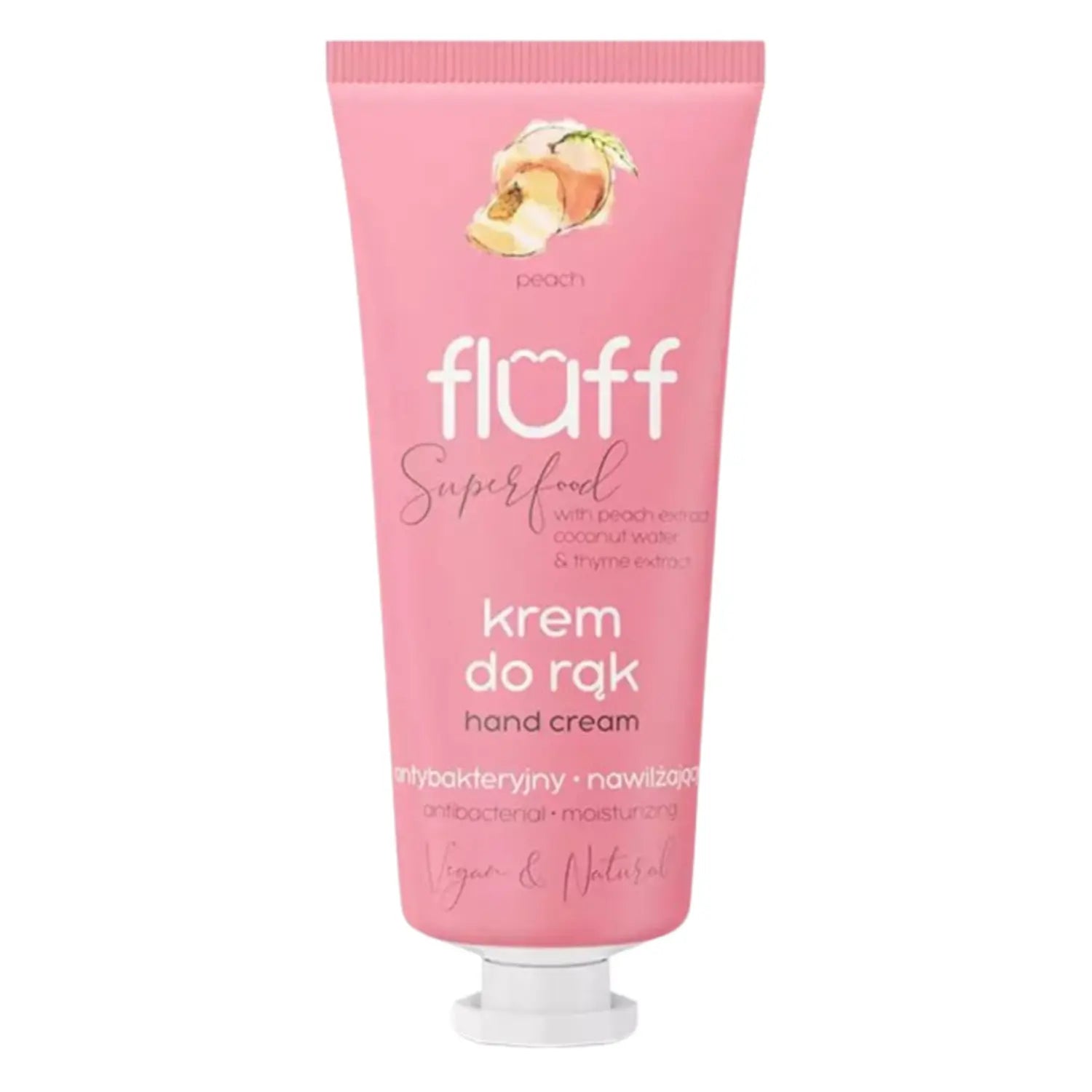 De Fluff Hand Cream Antibacterial & Moisturizing Peach is jouw daily hand essential voor zachte, frisse en beschermde handen. Deze intens hydraterende handcrème met Coconut Water verzorgt droge en beschadigde handen en geeft ze een heerlijke peachy touch.