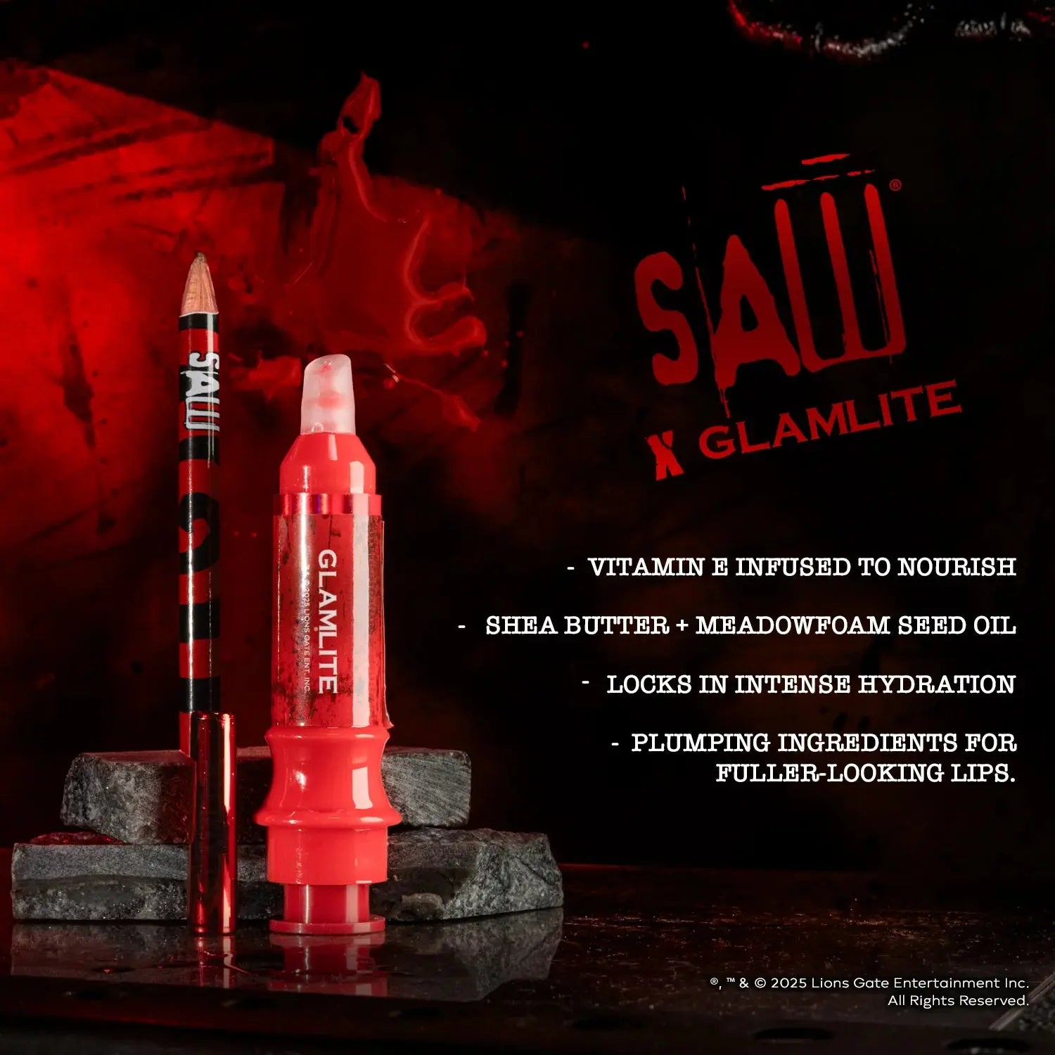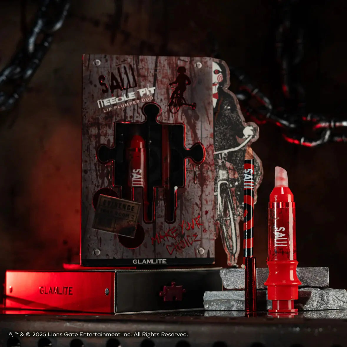 De Glamlite x SAW Lip Kit is de ultieme killer combo voor lippen die eruitzien om te zoenen, maar met een duistere twist. Geïnspireerd op de beruchte Needle Pit valt deze lipkit op door het edgy design en intense effect. Je kunt de pijn niet ontwijken, maar je lippen zullen er wél fantastisch uitzien.