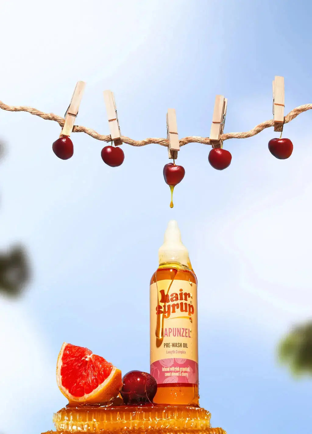 Hair Syrup Rapunzel 100 ml: Prunus Amygdalus (Sweet Almond) Dulcis Oil, Ricinus Communis (Castor) Seed Oil, Prunus Armeniaca (Apricot) Kernel Oil, Olea Europaea (Olive) Fruit Oil, Persea Gratissima (Avocado) Oil, Linum Usitatissimum (Flaxseed) Seed Oil, Helianthus Annuus (Sunflower) Seed Oil, Prunus Avium (Cherry) Seed Oil, Simmondsia Chinensis (Jojoba) Seed Oil, Argania Spinosa (Argan) Kernel Oil, Punica Granatum (Pomegranate) Seed Oil, Citrus Grandis (Pink Grapefruit Essential Oil) Peel Oil, Dunaliella Salina Extract, Daucus Carota Sativa Seed Oil, Tocopherol, Ascorbyl Palmitate. Allergens: Citral, d-Limonene, Linalol. Contains nuts & seeds.