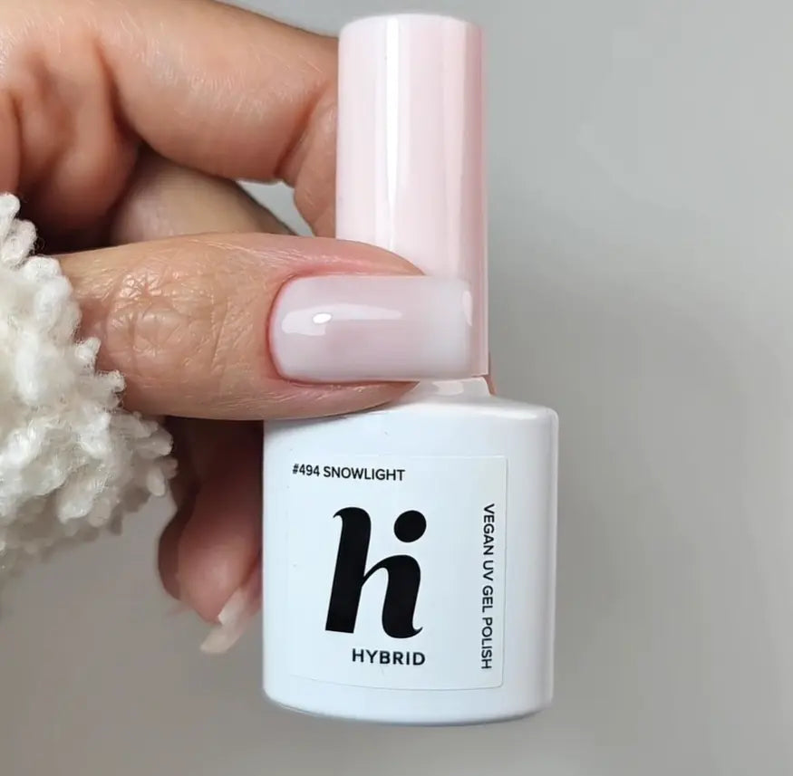 De Hi Hybrid 494 Snowlight UV Gel Polish is een semi-transparante UV gellak die jouw nagels een frisse, parelmoer glow geeft met een ijzig witte finish. Perfect voor wie houdt van zachte, glanzende manicures of een basis zoekt voor frosted of glazed nail art.