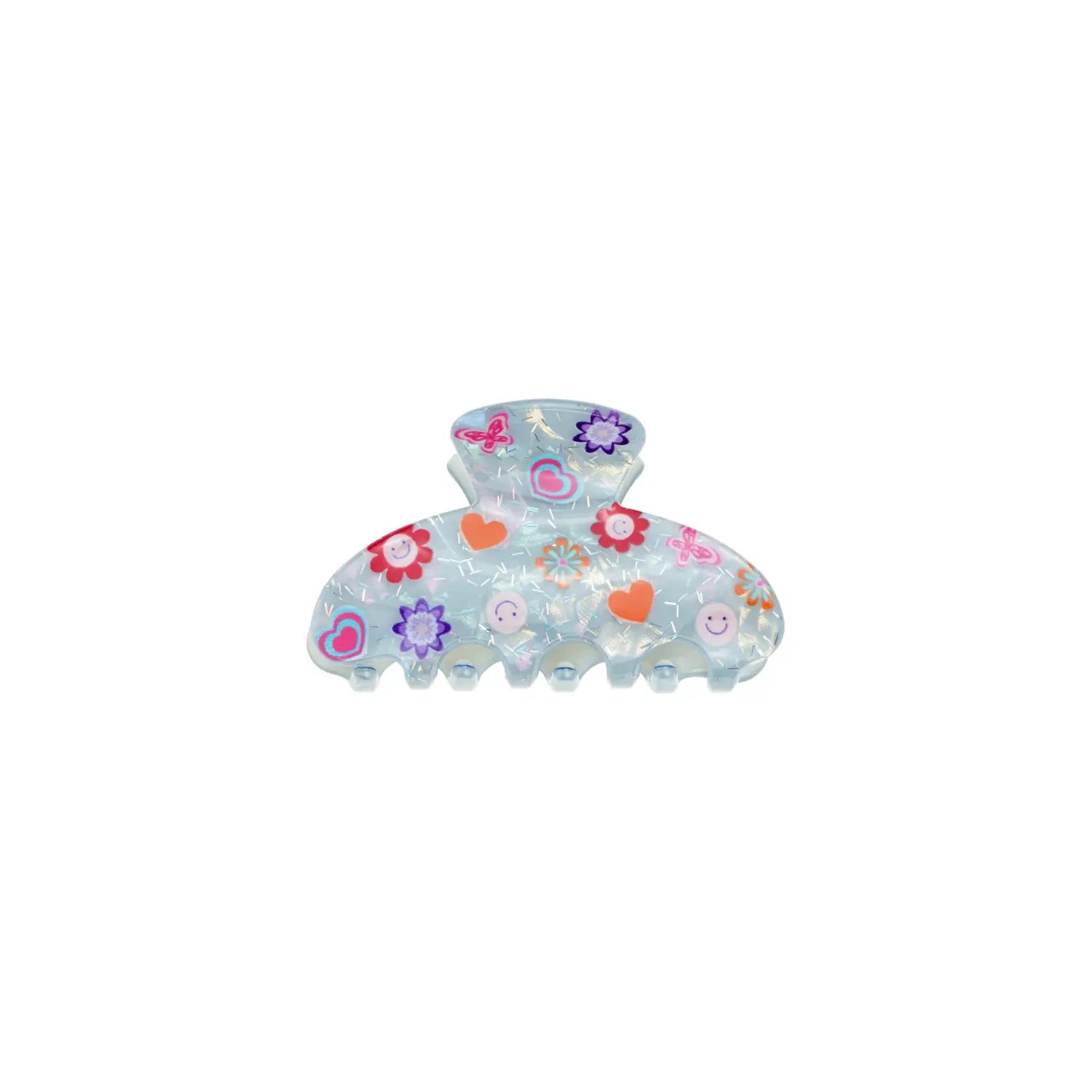 Laat je haar én persoonlijkheid stralen met de Invisibobble Clipstar Cosmic Glow: een vrolijke en sprankelende set van twee M-size snapclips die elke look een boost geven. Deze clips zijn allesbehalve standaard: de ene clip schittert met een glitterplaatje, terwijl de andere is versierd met schattige smileys en hartjes voor een speelse, feel-good vibe.