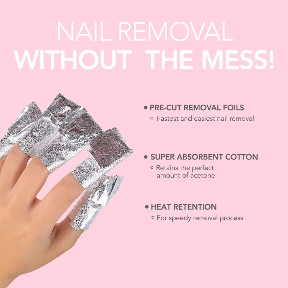 Dankzij het snug design en het super absorberende katoen blijft de juiste hoeveelheid acetone op zijn plek en in direct contact met het nagelproduct. De folie houdt warmte vast, waardoor het soak off proces sneller en effectiever verloopt. Met maar liefst 200 stuks ben je voorlopig helemaal ready voor snelle en zorgeloze nail removal sessies.