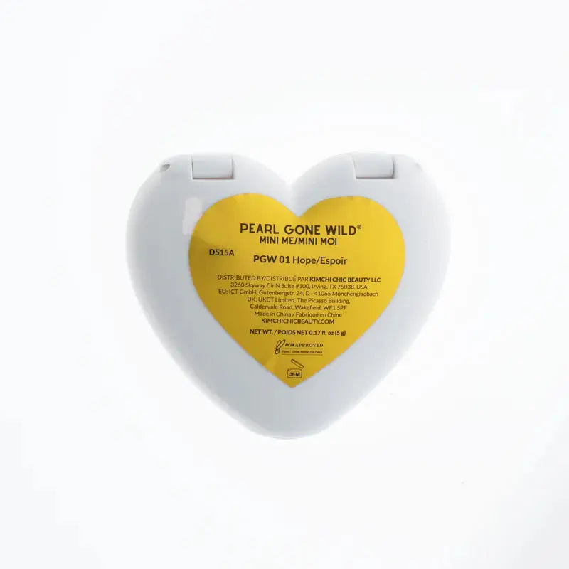 De KimChi Chic Beauty Pearl Gone Wild Mini Me Hope is een mini highlighter met megaveel shine. Deze pressed powder shimmer is perfect voor iedereen die dol is op een stralende finish nu in een schattig, hartvormig mini compact dat zó in je tas past. Of je nou wat glow op je jukbeenderen, sleutelbeen of ooghoeken wilt: deze highlighter doet het allemaal.
