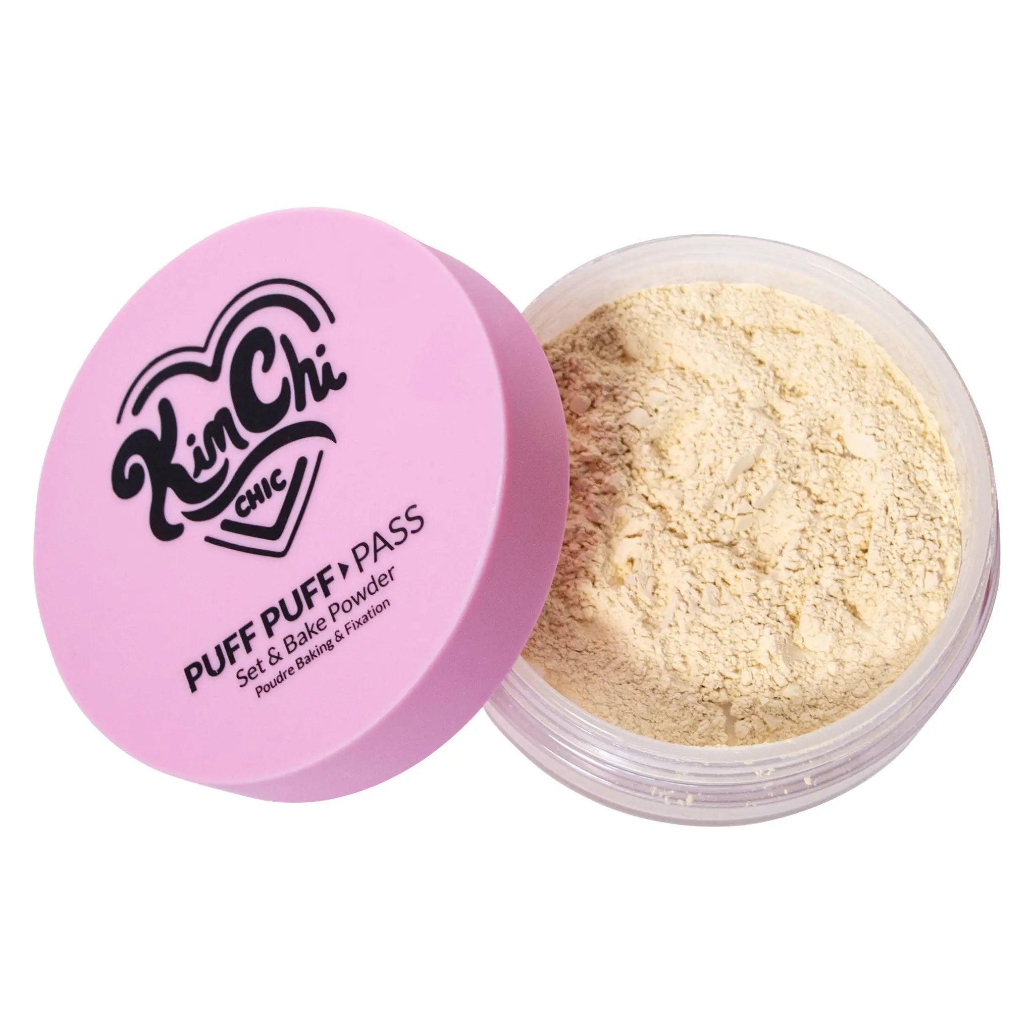 De KimChi Chic Beauty Puff Puff Pass Set & Bake Powder Translucent is een poeder met vitamine E voor het vastzetten van je make up look. De super fijne poeder bevat rijst poeder en absorbeert olie, waardoor je huid niet meer glanst maar een prachtige matte finish heeft. De poeder smelt als het ware samen met je huid en werkt fijne lijntjes, grove poriën en oneffenheden moeiteloos weg.
