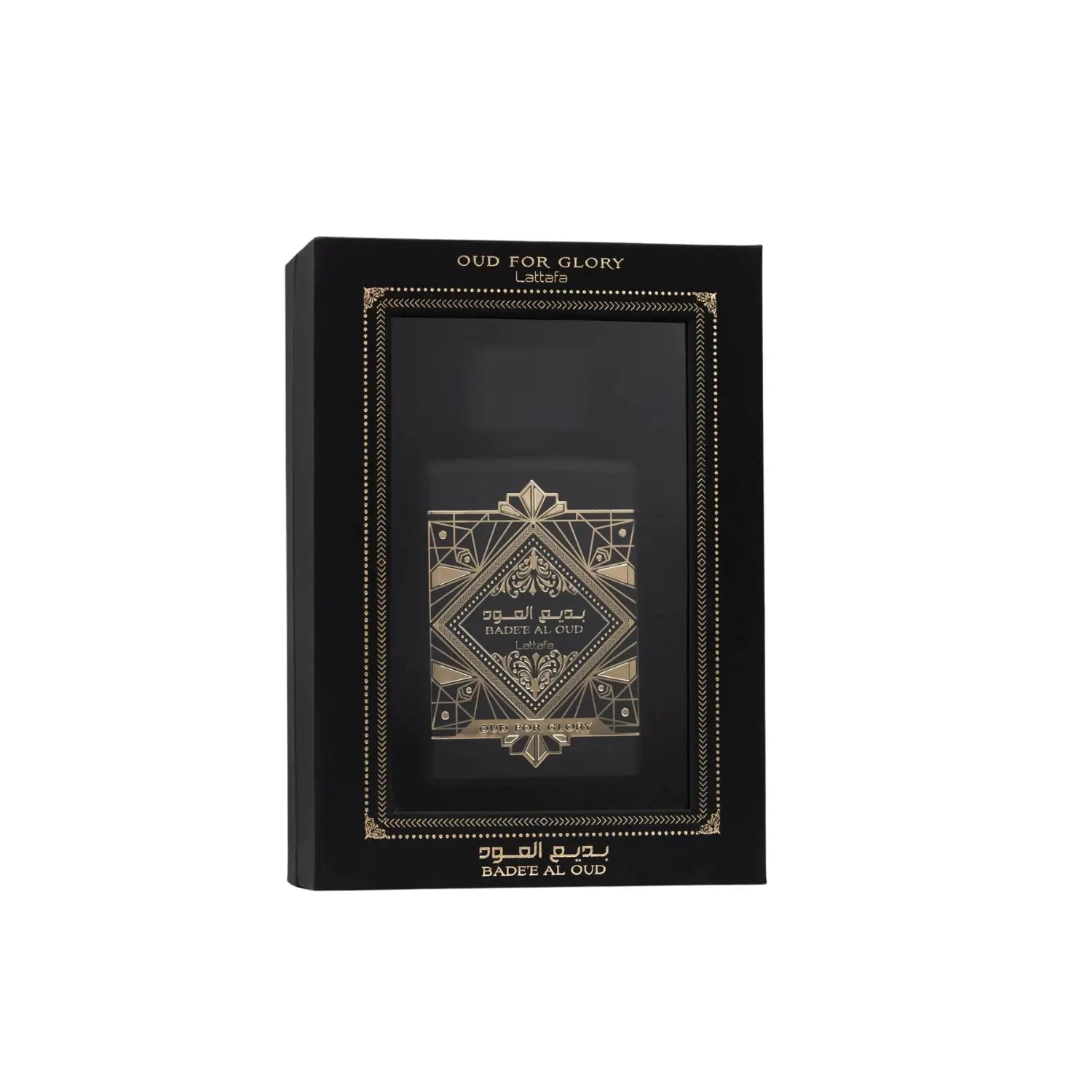 De Lattafa Badee Al Oud for Glory Eau De Parfum geïnspireerd op de Oud for Greatness is een diepe, krachtige geur vol mysterie en elegantie. Deze unisex geur is een ware ode aan het traditionele oudh, maar dan met een moderne twist. De geur opent kruidig en intens met saffraan, nootmuskaat en een vleugje lavendel, een onverwacht frisse kick die perfect balanceert met de warmte die volgt.
