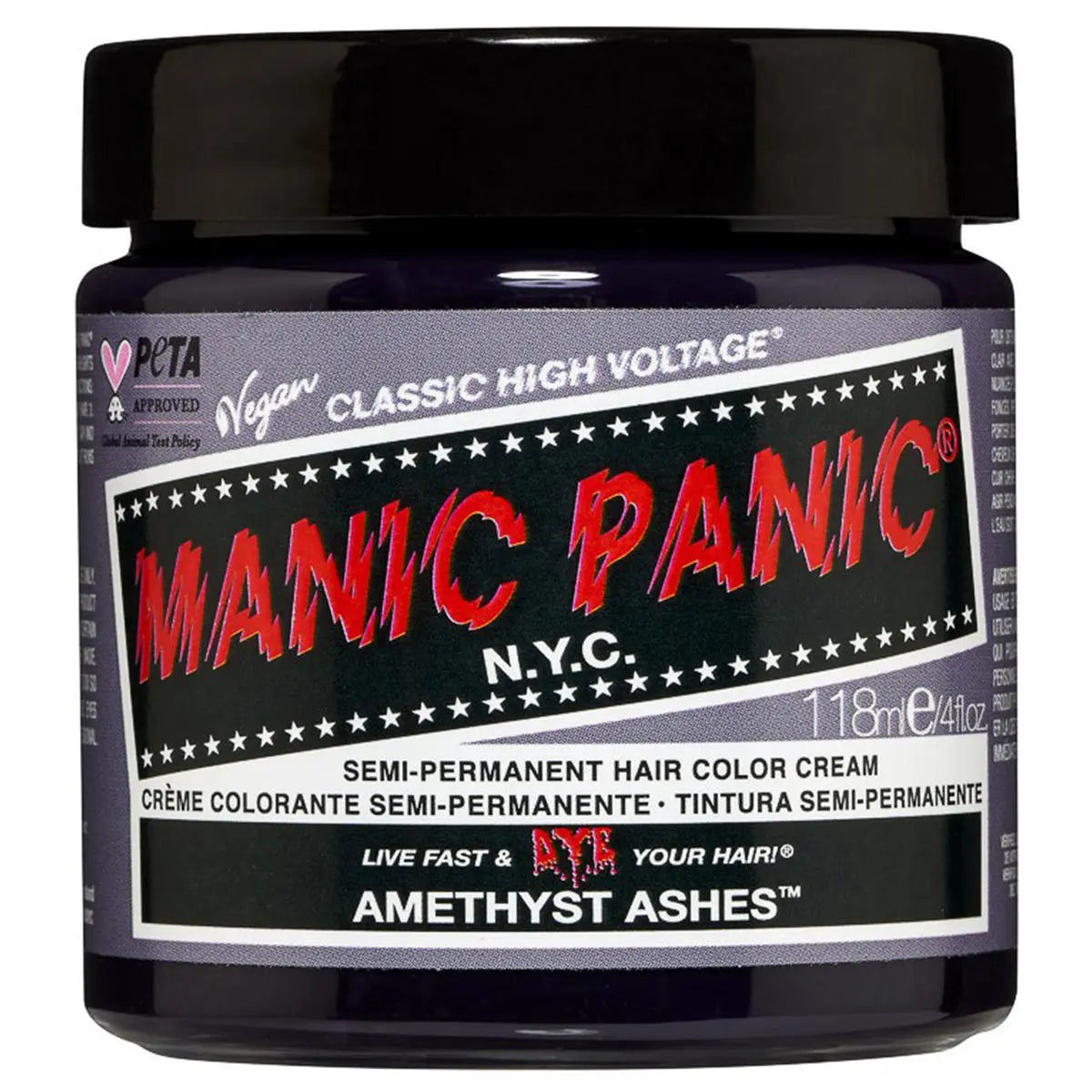 De Manic Panic Cendres D'Amethyste Hair Color is een rokerige grijze haarkleur met koele paarse ondertonen die je look meteen een edgy, mysterieuze vibe geeft. Deze tint uit de High Voltage Classic collectie is perfect als je houdt van unieke, koele haarkleuren met een subtiele paarse gloed.