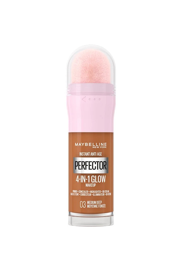 De Maybelline Instant Anti-Age Perfector 4 in 1 Glow Medium Deep is een echt multi wonder wat je make-uproutine een stuk makkelijker maakt! Deze perfector is een primer, concealer, highlighter en BB cream in één mét anti-aging. De formule zorgt voor een verhelderend effect met een stralende en frisse look als resultaat. Je huid krijgt een goede basis voor je make-up, een egale teint en een mooie natuurlijke lichte dekking.
