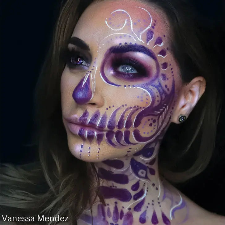 De Mehron Makeup Color Cups Purple is een klassieker onder de face & body paints. Deze greasepaint-formule staat bekend om z'n intense pigment, romige textuur en long-lasting resultaat. De paarse kleur glijdt soepel over de huid en geeft direct dekking zonder te vlekken of uit te drogen. Perfect voor full face looks of creatieve accenten waar bold kleur centraal staat.