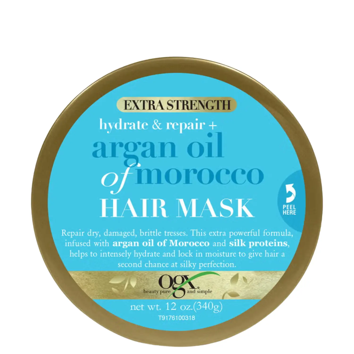 Het OGX Beauty Argan Oil Hydrate And Repair Extra Strength Hair Mask is jouw redder in nood bij droog, beschadigd en futloos haar. Dit intens voedende haarmasker zit boordevol rijke Marokkaanse arganolie en zijdeproteïnen en geeft jouw lokken een diepe hydratatieboost, al na 60 seconden!