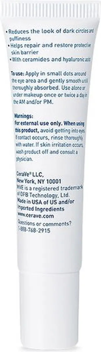 De CeraVe Eye Repair Cream is dé redder in nood voor vermoeide ogen. Deze oogcrème is speciaal ontwikkeld om donkere kringen, wallen en fijne lijntjes effectief aan te pakken. Dankzij de krachtige mix van essentiële ceramiden en hyaluronzuur wordt de gevoelige huid rondom je ogen intensief gehydrateerd en hersteld.