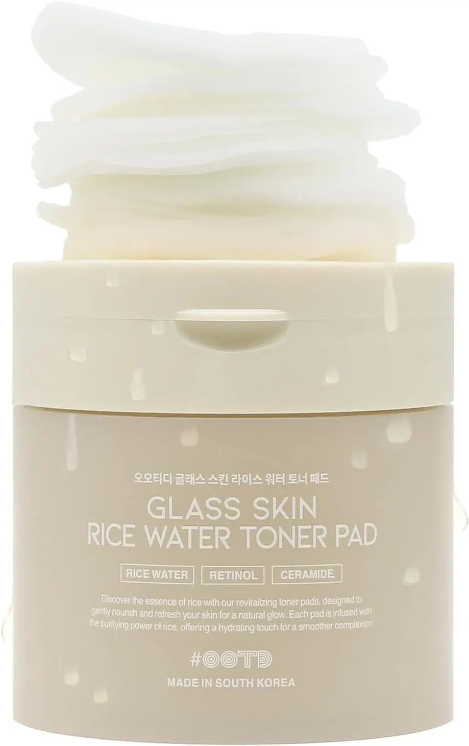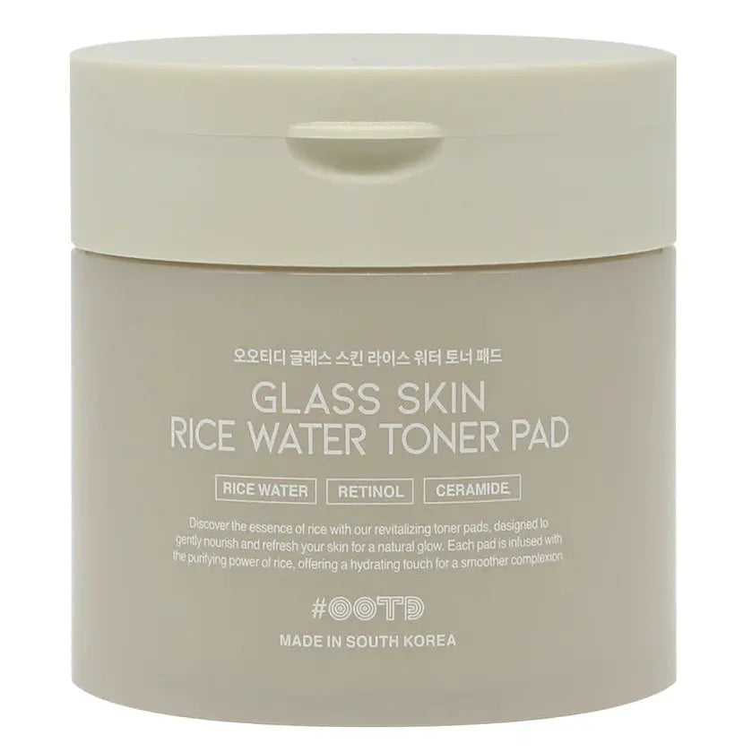 De OOTD Glass Skin Rice Water Toner Pad is jouw shortcut naar die gewilde, glowy glass skin look! Deze multifunctionele toner pads zijn doordrenkt met een frisse essence vol huid verhelderende en verzorgende ingrediënten zoals rijstwater, retinol en ceramide: perfect voor een soepele, stralende huid met een gezonde glow.