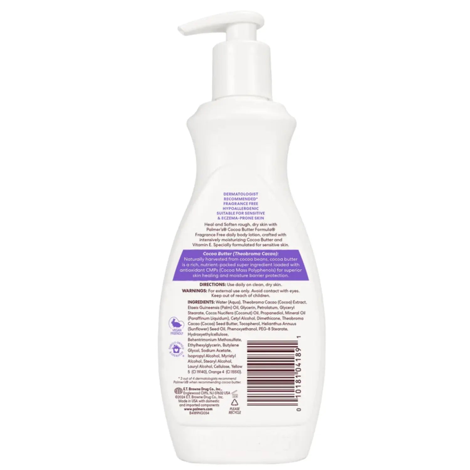 De Palmer's Cocoa Butter Formula Lotion Fragrance Free 400 ml is de ultieme bodylotion voor de gevoelige huid die intensieve verzorging nodig heeft, zónder poespas. Deze geurvrije variant is speciaal ontwikkeld om ruwe, droge huid te verzachten en langdurig te hydrateren: perfect als je huid snel reageert of als je liever geen parfum gebruikt.