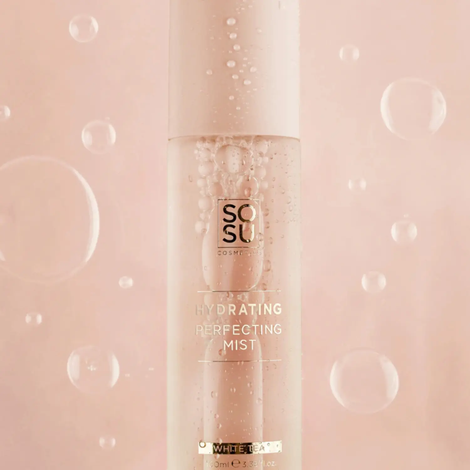 De SOSU Cosmetics Perfecting Mist Mint Tea is jouw all-in-one beauty boost in een frisse, vernevelende spray. Of je nu je huid voorbereidt op make-up, je look wilt setten of gewoon tussendoor snakt naar wat hydratatie: deze mist doet het allemaal, met een heerlijke geur van witte thee en munt. Je huid voelt direct fris, gehydrateerd en stralend aan: zonder plakkerig effect.