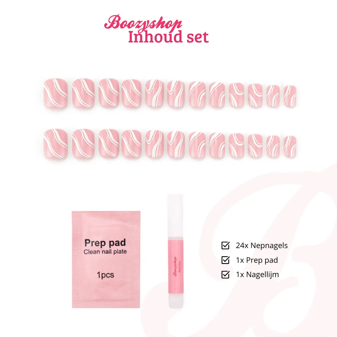 - Stijlvolle nepnagels voorzien van een subtiel design