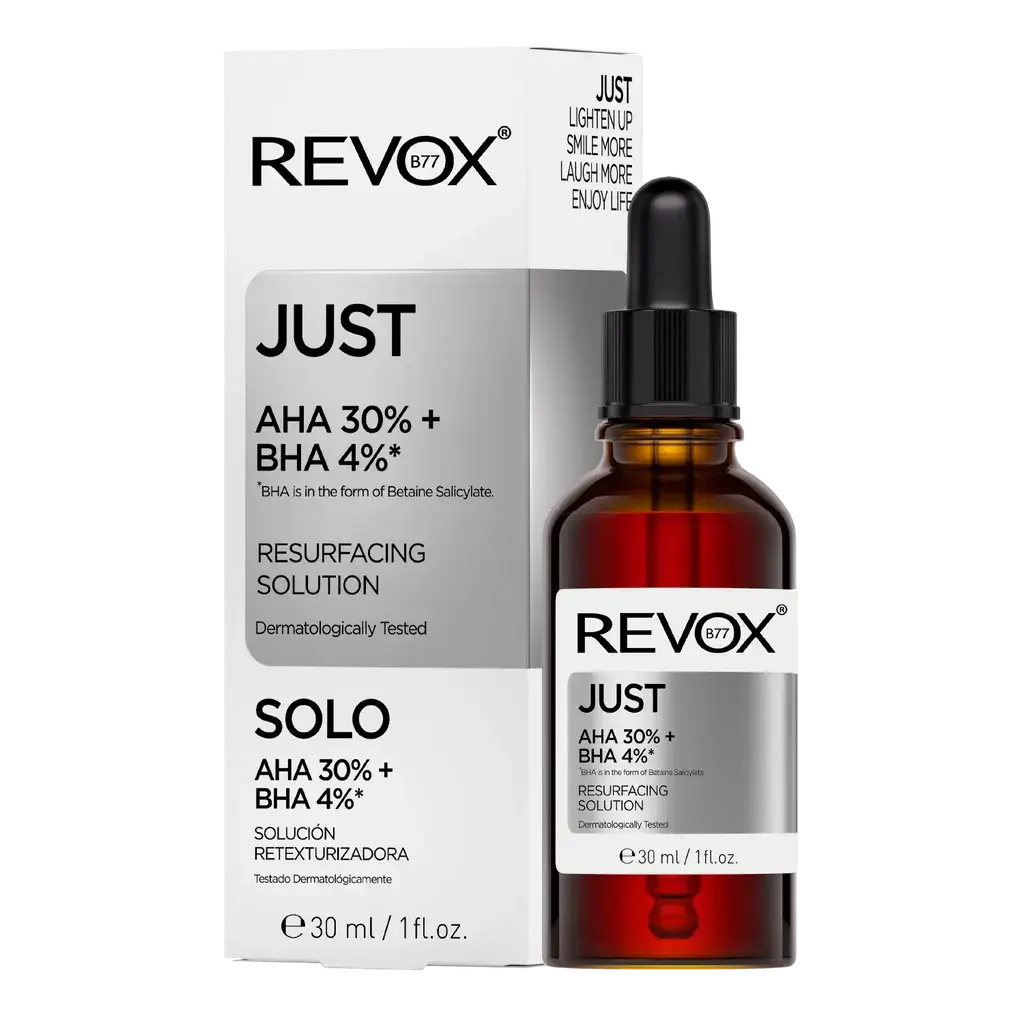 De Revox Just AHA 30% + BHA 4% Resurfacing Solution is een krachtige peeling die je huid vernieuwt en verheldert, ideaal voor iedereen die droomt van een gladde, stralende teint. Met de ultieme concentratie exfoliërende zuren zoals AHA (lactic en glycolic acid) en BHA (betaine salicylate), helpt deze peeling om dode huidcellen te verwijderen en je poriën grondig te reinigen.