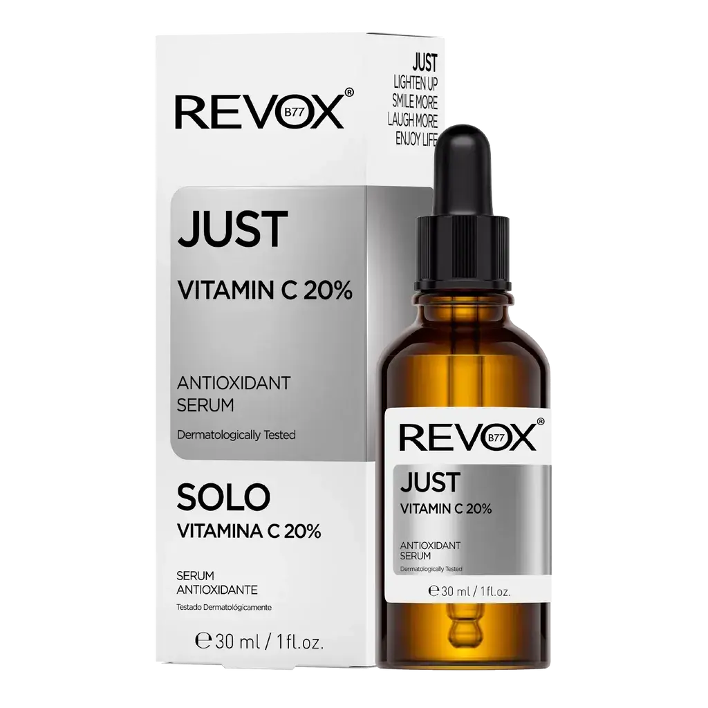De Revox Just Vitamin C 20% is een krachtige antioxidant serum voor gezicht en hals, ontworpen om je huid te beschermen, verhelderen en verjongen! Met 20% vitamine C gaat dit serum effectief vrije radicalen tegen, die collageen afbreken en rimpels en huidverslapping veroorzaken.
