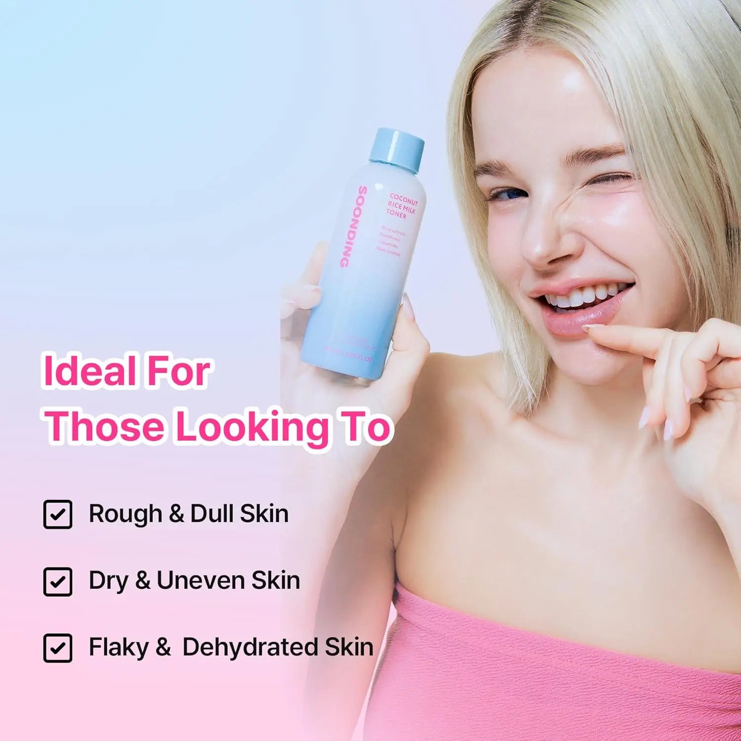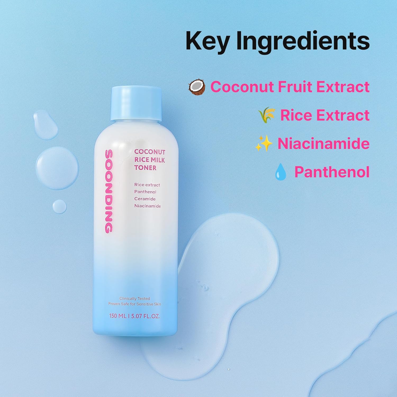 De Soonding Hydrating Milky Toner is de ultieme dorstlesser voor een droge of doffe huid. Met kokos en Koreaanse rijst geeft deze milky toner je huid een flinke hydratatieboost zonder zwaar aan te voelen. Je huid voelt fris, zacht en soepel, helemaal klaar voor de rest van je routine.