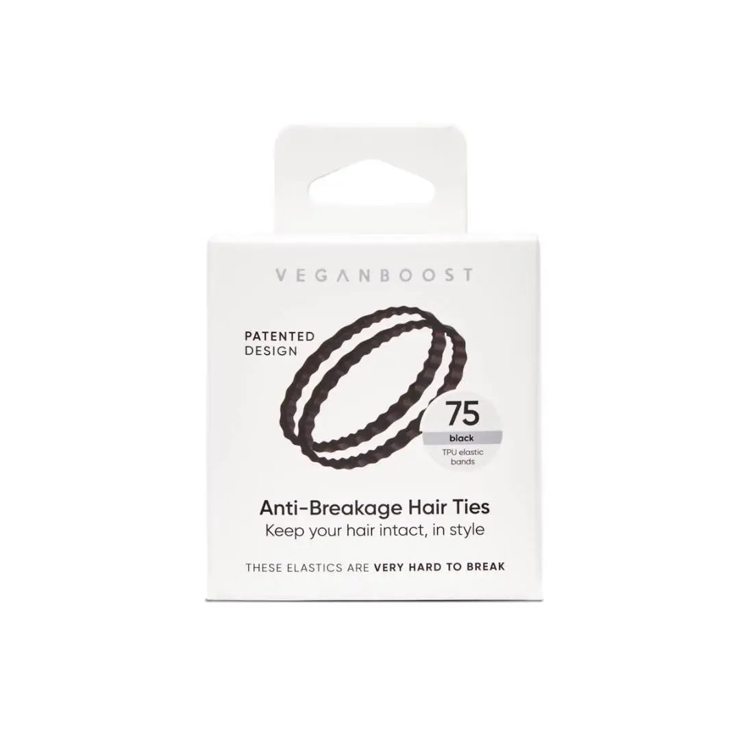 De Veganboost Anti Breakage Hair Ties Black is een essentiële set van 75 kleine haarelastiekjes die zijn ontworpen met een speciale kartelrand voor een stevige grip op je haar. Of je nu kiest voor een staart, vlecht of andere haarstijl, deze elastiekjes zorgen ervoor dat je kapsel de hele dag perfect blijft zitten, zelfs tijdens actieve bezigheden!