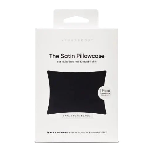 Veganboost Satin Pillowcase Lava Stone Black is dé must-have voor liefhebbers van luxe en comfort. Deze kussenhoes, vervaardigd uit vegan satijn, is niet alleen een prachtig voor het oog, maar ook een must-have voor je haar en huid.
