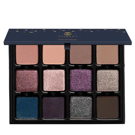 Het Viseart Paris Nuit Étendu Eyeshadow Palette is jouw ultieme ticket naar een verleidelijke, Parijse smokey eye. Met 12 prachtige tinten, van obsidian zwart en diep blackberry tot metallic pewter en inktblauw, creëer je moeiteloos alles van een zachte glinstering tot een intense nachtlook. De mix van moonlit shimmers en midnight mattes geeft je eindeloze mogelijkheden om te shapen, blenden en stralen zodra de zon ondergaat.