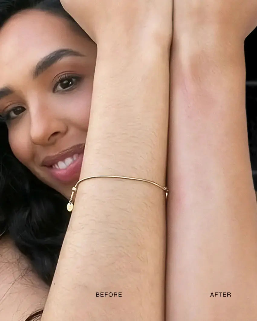 The Answr Exfoliating Hair Removal Drop is the game changer for silky smooth skin! This innovative hair removal tool not only effortlessly removes unwanted hair, but also exfoliates at the same time, leaving your skin with a smooth, glass-like finish. No razors, no pain, simply rub gently in circular motions over your skin and voilà: super soft, hair-free skin!