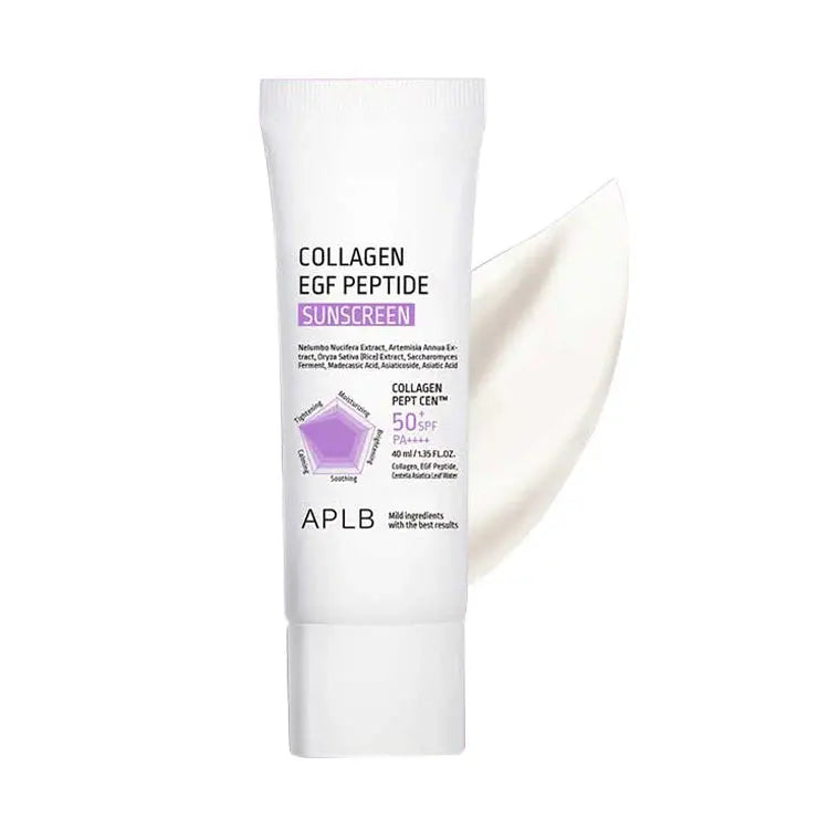 The APLB Collagen EGF Peptide Sunscreen is your daily sun protection and skincare in one! This powerful yet gentle sunscreen offers SPF50+ PA++++ protection against harmful UV rays while deeply nourishing the skin with collagen, peptides and EGF for firm, elastic and youthful-looking skin.