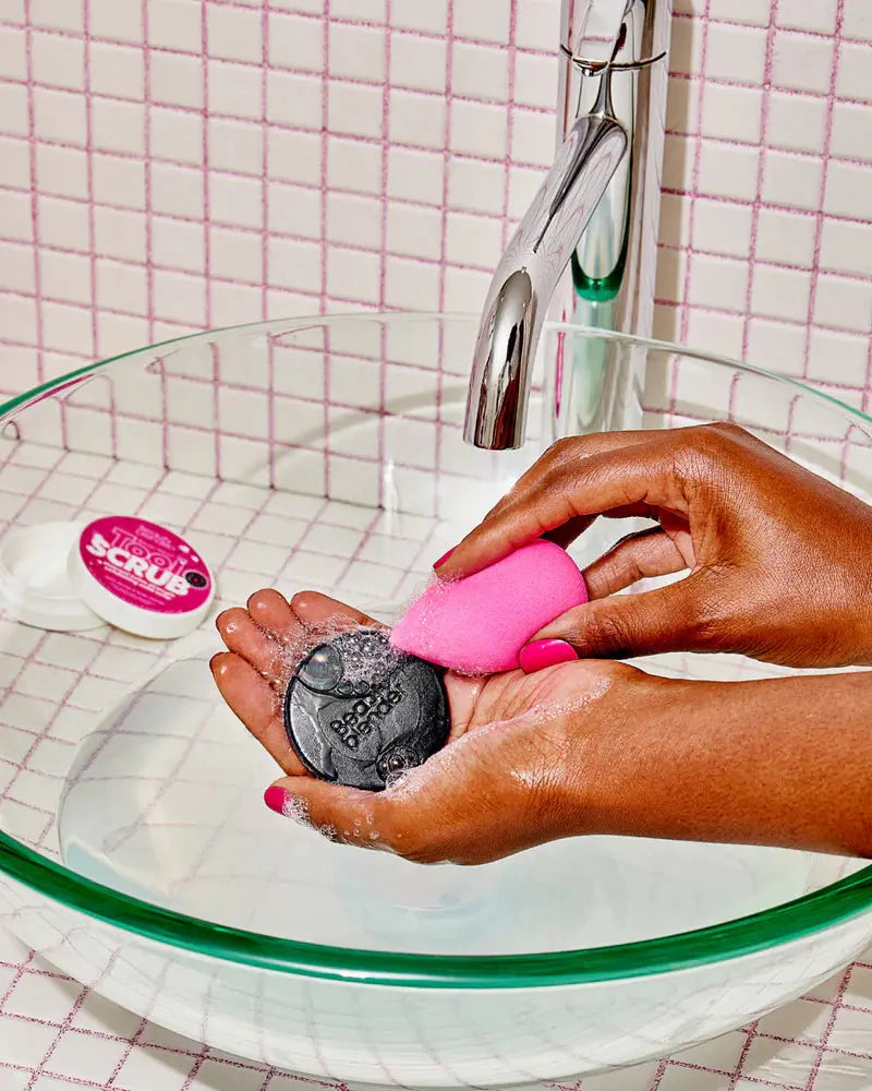 The Beautyblender Toolscrub Hand, Sponge & Brush Cleanser Charcoal 28 gr. is the ultimate deep-cleaner for your makeup tools. This multitasking solid soap with active charcoal and natural exfoliating grains removes makeup, dirt, and bacteria in one quick swirl. The detox effect of charcoal not only gives your sponges and brushes a fresh start, but also helps them stay in great condition for longer. No silicone mats or extra gadgets needed: just pure, effective cleaning.